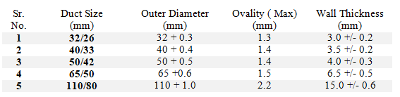 HDPE PIPE DIMENSION CHART (As per IS 4984: 2016)